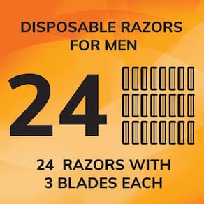 Lâminas de barbear descartáveis BIC Comfort 3, lâminas de barbear de longa duração de 3 lâminas para homens, máquinas de barbear perfeitas projetadas para um barbear suave e confortável, 24 unidades — Três pacotes de 8 unidades de barbear descartáveis BIC Comfort 3 para homens — As lâminas masculinas com três lâminas revestidas de cromo de longa duração fornecem um barbear firme e confortável — as máquinas de barbear faciais ideais — as lâminas de barbear BIC para homens com uma faixa lubrificante enriquecida com aloe e vitamina E para aprimorar Glide — Os barbeadores faciais apresentam uma alça texturizada com alça antiderrapante macia para melhor controle durante o barbear — Ótimos descartáveis masculinos máquinas de barbear para uso no rosto, cabeça e corpo — as máquinas de barbear ideais