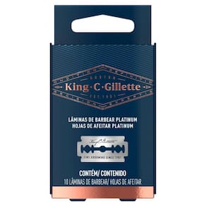 DUPLO FIO: Lâminas de alta performance e extremamente afiadas oferecem precisão e longa durabilidade. LÂMINAS MAIS DURÁVEIS: a lâmina de aço inoxidável de alta qualidade, revestida com platina para maior durabilidade. COMPATIBILIDADE: as lâminas de barbear King C. Gillette são compatíveis com o aparelho de barbear clássico King C. Gillette. CONTÉM: 10 lâminas de barbear duplo fio com platina King C. Gillette MELHOR EXPERIÊNCIA: com a nova linha de produtos para o cuidado da barba de King C. Gillette, sinta o melhor da sua barba