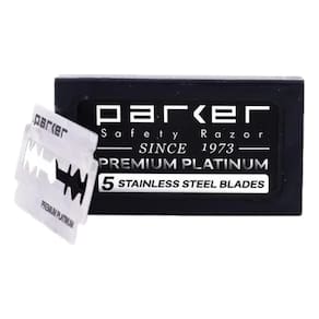 Lâminas de barbear de segurança Parker Safety Razor Double Edge, Lâminas de barbear Premium Platinum em aço inoxidável com PTFE, bordas revestidas de tungstênio e cromo para barbear suaves e confortáveis