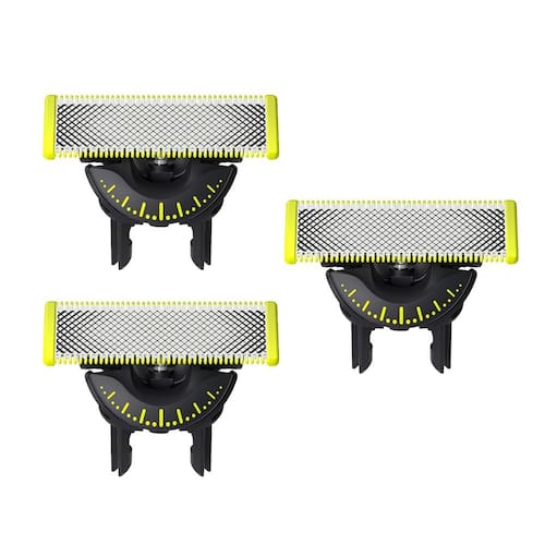Lâminas de substituição genuínas Philips OneBlade 360, para barbeador e aparador elétrico OneBlade, pacote com 3, modelo QP430/60 - Lâminas Philips OneBlade autênticas - Três lâminas de aço inoxidável que duram até 12 meses¹ - A inovadora lâmina 360 pode ser flexível em todas as direções para se ajustar às curvas do seu rosto; o design permite contato e controle constantes com a pele - Corta, borda e raspa qualquer comprimento de cabelo - O revestimento deslizante e as pontas arredondadas protegem sua pele; não muito perto para um barbear confortável