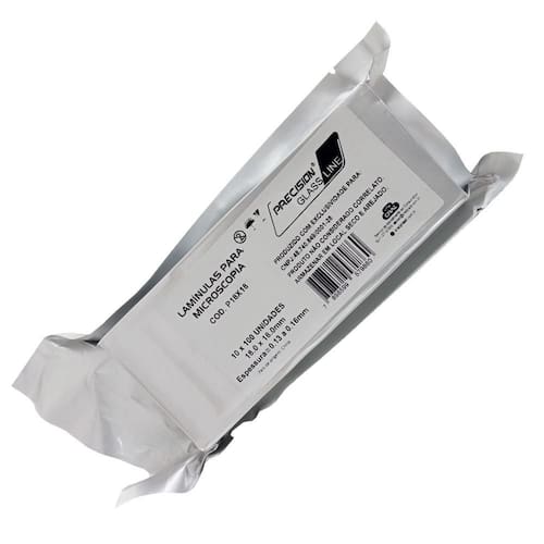 Lamínula para Microscopia - Tamanho 18.0 x 18.0 mm A lamínula para microscopia é Utilizado para sobrepor ao material biológico da lâmina durante a leitura no microscópio, o que permite uma melhor visualização do material e melhor identificação. São produzidas em vidro transparente de alta qualidade e sem imperfeições, limpas e adequadas para uso direto da embalagem. - Finas placas de vidro, fabricadas em polímeros especiais, resistentes a substâncias químicas - Espessura: 0,13 mm a 0,16 mm - Apresentação: pacote com 10 caixas com 100 unidades em cada totalizando 1000 lamínulas