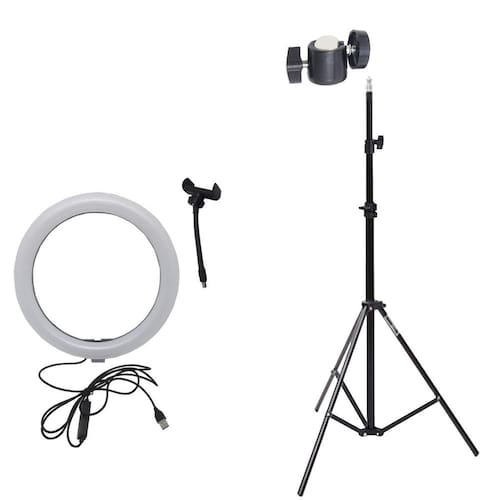 Anel de luz LED com suporte para celular e tripé ajustável.Uso