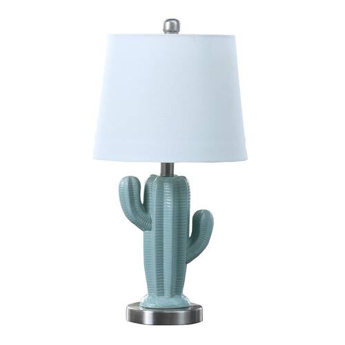 Candeeiro de mesa Benjara de 22 polegadas Accent, corpo desenhado em cacto, base de metal, azul, branco