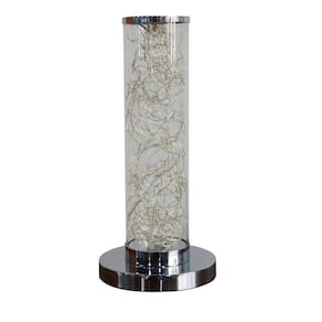 Candeeiro de mesa de coluna com LED multicolorido integrado transparente