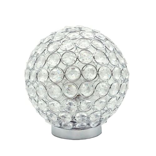 Candeeiro de mesa Benjara Denise de 9 polegadas, base redonda de metal, abajur de cristal, transparente e prateado