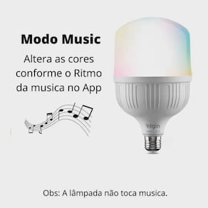 Pelo aplicativo Elgin Smart você pode programar para ligar ou desligar, mudar cor, intensidade ou temperatura da cor de acordo com as condições climáticas ou horário.