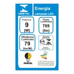 Produto Certificado - Informações do Selo de identificação da conformidade do Inmetro: OCP Acreditado pelo Inmetro: SGS Acreditação N: OCP 0040 Tipo de selo: Segurança / Desempenho Selo com Marca: Inmetro Programa de Avaliação da Conformidade: Lâmpadas LED com Dispositivo Integrado à Base Portaria Inmetro: n 144 de 13/03/2015 Registro: 001114/2020 Certificado: BRA20/01120