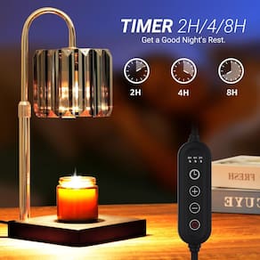 - [Recurso de cronômetro para maior conveniência] Não se preocupe em esquecer de desligar o aquecedor de velas com nosso recurso de temporizador de 2H/4H/8H. Perfeito para paz de espírito durante o sono ou enquanto desfruta da fragrância. Um cordão de 5 pés de comprimento e uma cortina ajustável estão incluídos para caber em vários tamanhos de velas em jarra.