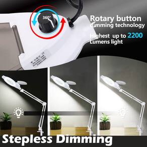 - Braço estável e tampa da lente: atualize o modelo, você pode apertar o parafuso conveniente do meio para resolver quedas não bem equilibradas. Você descobrirá que o braço desta lupa é muito fácil de ajustar qualquer posição que você quiser, sem o braço volumoso irritante, para evitar levantamento ou queda indesejados. Há um parafuso de polegar no clipe de alumínio de 5,6 cm, que permite que a luminária fique na posição desejada. A capa da lente protegerá sua lupa contra poeira.