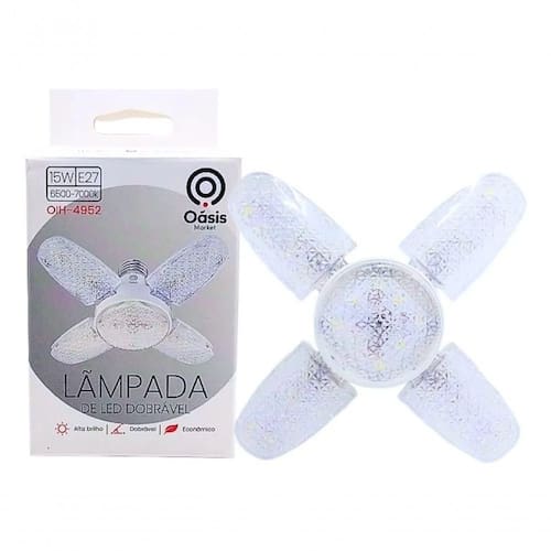 Características geraisMarcaOasisModeloLampada de Led Dobravel Super economicaTecnologia de iluminaçãoLEDPotência15 W