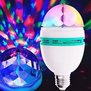 Essa lâmpada possui sistema rotativo automático, gerando um efeito RGB com variações de cores, ideal para criar um ambiente dinâmico e vibrante em qualquer espaço.