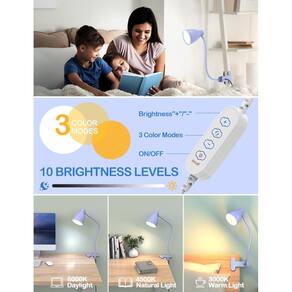 - Luminária de mesa roxa lilás fofa: a luz de grampo apresenta 3 temperaturas de cor: luz branca quente (3000K), luz natural (4500K) e luz branca fria (6500K). Cada modo de iluminação tem 10 níveis de escurecimento de brilho. Total de 30 modos de iluminação para atender a todos os seus requisitos. A lâmpada lilás roxa é um lindo acessório de mesa!