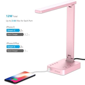 A porta de carregamento USB integrada na base da lâmpada é projetada para manter seus telefones celulares, tablets, leitores Kindle, iPad, iPhone ou qualquer outro dispositivo carregando. A porta USB funciona independentemente de a lâmpada estar ligada ou desligada.