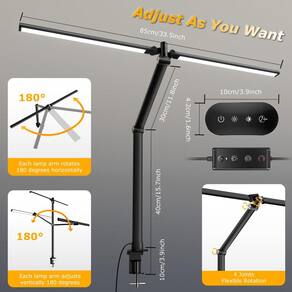 - Modelos ultra amplos de braços duplos e ajuste: nossas lâmpadas de mesa para escritório em casa possuem dois braços extra-largos, cada um com 44,5 cm de comprimento, com barras de luz que se estendem até 89 cm, oferecendo cobertura uniforme para uma mesa de 190 cm de largura e iluminação ampla e suave. Acomoda alturas de trabalho acima de 78,7 cm e é compatível com 76,2 cm, 73,7 cm, 68,6 cm, 61 cm e outros monitores. Lâmpada de mesa de escritório com fácil instalação e o design de estrutura de metal resistente se prende facilmente à borda da mesa em até 9 cm, liberando mais espaço na mesa