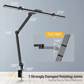 -?7 juntas rotativas?: A luminária de mesa LED Micomlan Swing Arms apresenta 7 juntas fortemente amortecidas com design de 3 barras de luz ultrabrilhantes para ajuste vertical e horizontal livremente. Você pode girar as barras de luz bilaterais verticalmente para alterar o ângulo de iluminação. Aumente-os para expandir a cobertura de iluminação para iluminar toda a sua mesa ou abaixe-os para criar uma área de iluminação super brilhante para costura e artesanato. Você também pode girar a base para ajustar a direção e a posição da luz.