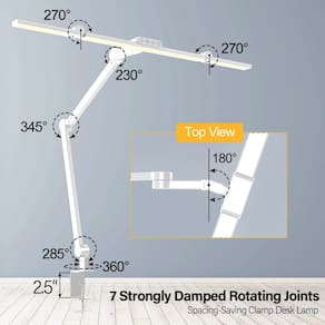 O suporte de grampo mantém a lâmpada de mesa alta estável e suporta até 6,3 cm da mesa. E o acolchoamento de silicone nos suportes é macio, mas firme, eles não arranham sua mesa. A lâmpada de fixação é uma construção muito sólida, oferece resistência suficiente para garantir que os braços não se movam facilmente ao tocá-los acidentalmente.