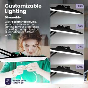 - Versátil e fácil de usar – Esta luminária de mesa de escritório permite que você adapte a iluminação às suas necessidades com quatro níveis de brilho (100%, 75%, 50% ou 25%). O design do grampo flexível garante ângulos de iluminação ideais, tornando-o perfeito como uma lâmpada de mesa ou luz de bancada para aumentar a produtividade e o conforto durante várias atividades.