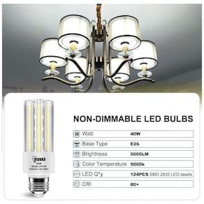 A lâmpada de milho LED de alta luminosidade de 40W equivale a uma lâmpada incandescente de 300W, proporcionando economia de energia. Com incríveis 5000 lumens de saída de luz e iluminação omnidirecional de 360 graus, abrange uma área maior. Possui longa vida útil devido ao corpo de alumínio com excelente condutividade térmica e tecnologia LED de corrente constante inteligente. Com 5000 lumens de brilho intenso, ilumina grandes áreas com 100lm/watt, destacando-se pela intensidade. A base da lâmpada de milho é feita de material PC, resistente ao calor e com alta resistência a chamas. Design único em formato de milho para iluminação ampla, base média E26E27 para fácil instalação. Ideal para uso em garagens, armazéns, jardins, pátios, celeiros, lojas, estações, escolas, hospitais, restaurantes, hotéis e mais.