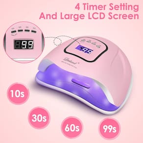 - ?Secagem de unhas ou gel de led de forma flexível? - Secador de unhas UV de alta potência de 150W com 45 peças de contas de LED de elemento de iluminação ajustável tornam as unhas ou gel de led secagem mais inteligente. Opções de secagem flexíveis com configuração de 4 temporizadores: modo 10s/30s/60s/99s, potência entre 150W (10S)-80W (30S/60S)-54W (99S) para seguir os requisitos do seu esmalte de gel diferente. Tornou a lâmpada de unhas inteligente e fácil de usar.