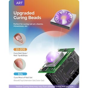 Lâmpada UV para unhas Flash Cure - ?Mini mas potente? - Com chips inovadores 2024 de ponta. A luz de cura instantânea Melodysusie ART01R para gel x unhas proporciona cinco vezes mais luz concentrada, cola de strass, designs de unhas de gel 3D e decorações em apenas 10 a 20 segundos - muito mais rápido do que os tipos de gel tradicionais, que podem levar até 60 segundos. Lâmpada revolucionária de cura flash que transformará sua experiência de arte em unhas! - ?Capa protetora para os olhos? - Esta luz UV para unhas possui uma capa protetora transparente exclusiva que protege a lente enquanto garante que a retina seja protegida da forte luz UV. Com seu design inovador de holofotes quadrados, foi construído para durabilidade e desempenho excepcional, proporciona cura flash consistente e confiável para suas criações de arte em unhas. - ?Recarregável e portátil?- Experimente a conveniência da nossa lâmpada de unhas UV sem fio alimentada por bateria de 450 mAh! Com uma única carga, aproveite até 14 dias de uso. Seu design leve e compacto o torna o companheiro de viagem perfeito, para que você possa levá-lo facilmente para qualquer lugar. Se você estiver em uma viagem/noite de meninas com seus amigos, esta luminária de unhas portátil é sua melhor amiga de beleza! - ?Modos de temporizador 20S/60S? - O mini secador de unhas tem 2 temporizadores para escolher, pressione rapidamente para configuração de temporizador de 20s, desligue e pressione para hiold por 2s. Mude para configuração de temporizador 60s, é eficiente para manicure em gel e arte de unhas, pode curar cola de unhas, bases e camada superior, gel de extensão de unhas etc. Aviso: se a luz UV não desligar, pressione e segure o botão por 5 segundos. - ?Marca líder de ferramentas para unhas?-MelodySusie, uma marca confiável e favorita entre os amantes de unhas, tem se dedicado a desenvolver produtos de arte de unhas de alta qualidade, como lâmpadas UV LED para unhas, há mais de dez anos. Com foco na inovação tecnológica, nos esforçamos para fornecer produtos profissionais e confiáveis para salões de unhas e entusiastas de manicure.