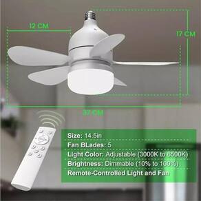 Voltagem: ac 85v-265v bivolt Potência: 30 w Material: plástico Tamanho: 23cm x 9,8 cm Cor: branco Vida mediana: 25.000 horas Base: e27 Inclui: 1 x ventilador de teto com 5 pétalas, 1 x manual, 1 x controle