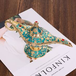 -?Qualidade e durabilidade?Esta lâmpada mágica Aladdin é feita de liga de zinco de alta qualidade; de longa duração, antioxidante, sem ferrugem e nunca desbota, é durável de usar. Somente para coleta e visualização, não a use como queimador de incenso
