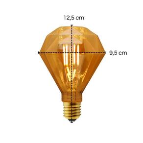 Lâmpada Diamante G95 Filamento Led Vintage 4W Bocal Rosca E27 Luz 2200K Âmbar Bivolt Para Pendentes Abajur Lustres Lâmpada formato diamante com luz de cor âmbar com características vintage, traz estilo, beleza e aconchego para seu ambiente. Especificações do Produto:- Lâmpada de filamento LED G95- Tipo de bocal: Rosca modelo E27- Potência: 4W- Voltagem: Bivolt 110/220v - Temperatura da Luz: 2200K Âmbar - Peso: Cada lâmpada pesa aproximadamente 75 gramas- Material: Vidro- Possui 4 filamentos- Medidas: Diâmetro:9,5cm x Altura:12,5cm- Indicado para uso em locais internos Itens inclusos:- 1 Lâmpada Led G95