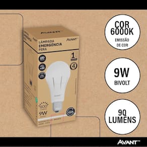 Lâmpada Emergência Pera AVANT 6000K - Luz Fria - 9W - Lâmpada Emergência Pera AVANT Lâmpada Emergência Pera AVANT É a escolha perfeita para quem valoriza funcionalidade e segurança no dia a dia. Desenvolvida com tecnologia moderna, ela combina três modos de uso em um único produto: emergência, convencional e lanterna, oferecendo versatilidade em qualquer situação - desde quedas de energia até atividades ao ar livre. Com autonomia de até 4 horas no modo emergência, acende automaticamente quando há falta de energia, garantindo iluminação contínua e segurança em momentos críticos. No modo convencional, funciona como uma lâmpada LED comum conectada à rede elétrica. Já no modo lanterna, pode ser Utilizado de forma portátil, ideal para deslocamentos, acampamentos ou ambientes com pouca iluminação. Principais Características: 3 em 1: Funciona como lâmpada de emergência, lâmpada comum e lanterna portátil Autonomia: Até 4 horas de iluminação no modo emergência Vida útil: 15.000 horas, garantindo longa durabilidade Tempo de recarga: 24 horas para carga completa Índice de proteção: IP20 uso interno, protegido contra poeira e toques acidentais Modelo tipo Pera: Compatível com soquetes padrão E27 Luz LED econômica e eficiente Benefícios: Segurança em emergências: Garante luz imediata durante quedas de energia Multifuncional: Ideal para residências, comércios, escritórios e viagens Portabilidade: Modo lanterna perfeito para uso em ambientes externos e situações de mobilidade Instalação prática: Pode ser Utilizado como qualquer lâmpada comum Economia de energia: Tecnologia LED de baixo consumo Confiabilidade: Produto resistente, funcional e de alta performance Características Gerais do Produto: Marca: Avant Cor: Branco Voltagem: Bivolt Acompanha o produto: 1 Lâmpada 3 em 1 AVANT. : 12 Meses Fabricante