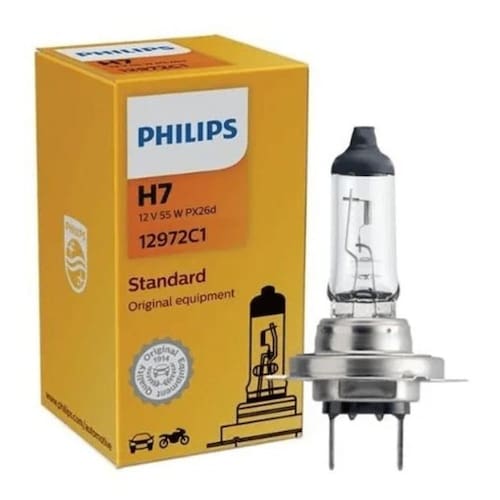 Lâmpada farol h7 12v philips único - Lampada comum standard modelo h7: Linha padrao para quem que uma solução com qualidade sem alteração de caracteristica no veiculo. Aplicação: Todos os carros que usem lâmpada h7 12v. Especificação técnica: Descrição: h7 Volts: 12 Watts: 55 Base: px26d Tipo philips: 12972c1 Fabricante: philips philips brasil Preço unitario. Conteúdo da embalagem: 1 - lâmpada farol h7 12v philips . Características gerais do produto: Modelo: h7 standard Marca: philips Tensão saída: 12 v É kit: não Cor da lâmpada: amarelo Acompanha o produto: 1 - lâmpada farol h7 12v philips . : Sem Marca: Não Informado