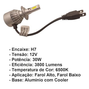 Lâmpada Farol H7 Led Moto 3800lm 12vx30w Aplicaçlão: - Lampadas com encaixe H7 Conteúdo da Embalagem: - 01 Lampada LED H7 Uma Peça Atenção: - Aumente a projeção e alcance de luz com a tecnologia LED, trazendo maior segurança e visibilidade durante a direção noturna - A lâmpada não requer utilização de reator, possui coloração branca e sistema de arrefecimento com cooler, melhora consideravelmente a luminosidade proporcionando muito mais visualização das vias Especificações Técnicas: - Resistente ao Calor Contém um Cooler para resfriamento - Encaixe: H7 - Tensão: 12V - Potência: 30W - Eficiência: 3800 Lumens - Temperatura de Cor: 6500K - Aplicação: Farol Alto, Farol Baixo - Base: Alumínio com Cooler - Design Compacto - Resistente a Água. - Base e Corpo da Lâmpada em Metal - Excelente Resistência a Vibrações e Emissão de Luz Estável - Longa Vida Útil, Dura Até 2 Vezes Mais que as Lâmpadas LEDs Convencionais Marca: Não Informado