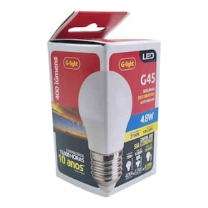 A lâmpada Lâmpada G45 Leitoso 4,8W 2700K E27 Bolinha Decorativa é frequentemente utilizada em luminárias decorativas, pendentes e arandelas, onde seu formato compacto e a luz amarela suave criam um efeito visual agradável.