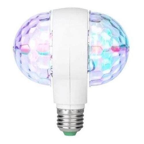 CARACTERÍSTICAS: - A Lâmpada Rgb Giratória Abajur Dupla Maluca Colorida têm características de lâmpada com aparência de bola de cristal e prismática, rota automaticamente e tem cores diferentes para mudar, girar, que é adequado para discoteca, salão de festas, KTV, bar, palco, clube, etc - Conhecida também por Magic Led RGB é uma evolução das antigas Bolas Malucas. Possui maior potencial luminoso, com cores mais vivas e maior durabilidade, fácil utilização, você pode ligar em qualquer tomada de sua casa, com isso pode usar a mesma em qualquer ambiente que desejar, como: Salas, Garagens, Quartos Buffets, casas noturnas, etc. - Nova marca com alta qualidade lâmpada LED com belo cristal e bola prismática giratório.