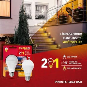 - A lâmpada inteligente 2x1 é um produto exclusivo que permite a troca da luz branca para luz anti-inseto através de toques no interruptor.;