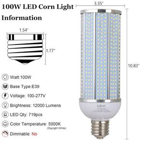 Reduza a conta mensal em 90 Nossa lâmpada LED de milho de 100W ajuda você a reduzir mais de 90 do custo da conta de eletricidade substituindo sua lâmpada incandescente de 900W. 50.000 horas de vida útil Qualidade super estável e vida útil prolongada. Pode servir para você até 23 anos com cinco horas de uso por dia. 12000 lumens aplicação super brilhante e ampla Nossa lâmpada de milho acende instantaneamente sem demora, iluminando todos os cantos do seu quarto com um mínimo incrível de 120lm , watt. Design exclusivo, forma de lâmpada de milho para obter brilho de 360 . Base E39 Mogul para fácil instalação. Amplamente utilizado na garagem, zém, jardim, oficina, pátio, pátio, celeiro, shopping, super, estação, rua, escola, hospital, restaurante, hotel etc Marca: Não Informado