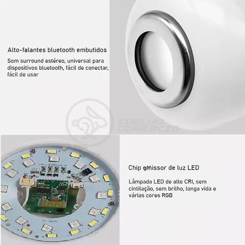 - Com o controle remoto, você regula a intensidade e cor da luz, efeitos da luz, volume do som, liga desliga, muda de música, play ou pause, etc