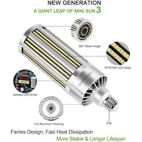 Super brilhante com alta potência de 135lm, w para eficácia de lúmen, 1128pcs de chips de LED Epistar criam uma saída impressionante de 27.000 lúmens com apenas 200 Watts de LED. Design dos EUA com a mais nova tecnologia LED de 2022. Carcaça totalmente revestida de alumínio com driver de LED isolado forte. Design sem ventoinha com dissipação de calor rápida, bom para luminárias totalmente fechadas em operação totalmente silenciosa Instant on, sem flash, sem cintilação, verde e ecológico, para os olhos. Ângulo de feixe de 360 Iluminação omnidirecional, cobertura de área maior, consistente e confiável para projeto de iluminação e industrial E39 grande base mogul com suporte de voltagem 100 277, adequado para luminárias comerciais e industriais dos EUA, amplamente utilizado em zém, celeiro, quintal, super, facotry, estacionamentos, escola, hospital, academia, luz de rua onde quer que precise de iluminação suficiente Marca: Não Informado