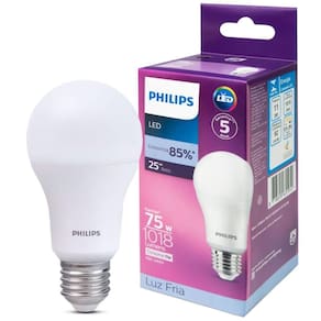 Lâmpada Led Bulbo A60 11 Watts 6500k Branco Frio Bivolt - 929003532312 - Philips Lâmpada Led Bulbo A60 11 Watts 6500k 1018lm Bivolt - 929003532312 - Philips Lâmpada Led Bulbo A60 11 Watts 6500K Branco Frio Bivolt - 929003532312 - PHILIPS Características Técnicas: - Garantia: 5 anos ( Fornecedor ) - Vida Útil (em Horas): 25000 - IRC (Índice de Reprodução de Cor): 80 - Índice de Proteção: IP20 - Sku marca: 929003532312 - Fluxo Luminoso (em Lúmens): 1018 - Base da Lâmpada: E27 - Temperatura de Cor (Kelvin - K): 6500K - Legenda Temperatura de Cor: Luz Branca Fria