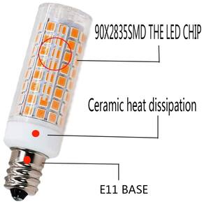 Conservação de energia LED e11 de 8W é igual a 75W de Lâmpadas E11 tradicionais de 100W. Índice de renderização de cores CRI 80, branco quente 3000K.