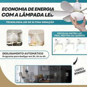 Transforme seu ambiente com a Lâmpada LED com Ventilador de Teto Bivolt Controle 80W E27! Uma solução prática e inovadora que combina iluminação eficiente com ventilação, ideal para quem busca conforto, economia de energia e estilo.