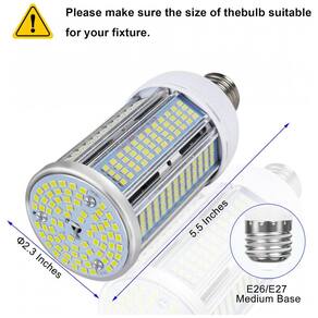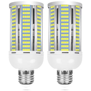 O conjunto de 2 lâmpadas LED Corn Elivern de 50W, equivalente a 400W, oferece 6000 lumens com luz daylight 6000K e base E26/E27, ideal para uso em garagem, fábrica, armazém e áreas externas. Possui design fanless para operação silenciosa e alta durabilidade, com dissipação de calor eficiente em corpo de alumínio. A iluminação é instantânea, sem flicker, com ângulo de 360° para cobertura total, substituindo lâmpadas incandescentes tradicionais e economizando energia. Compatível com soquetes E26/E27, possui índice de reprodução de cor acima de 90 e vida útil estimada em 50.000 horas. Produto ecológico, sem mercúrio ou radiação UV, seguro para os olhos. Inclui adaptadores para diferentes bases.