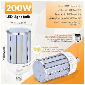 A Lâmpada de LED Corn XYCN de 200W proporciona uma iluminação poderosa e eficiente, com mais de 55.000 horas de vida útil. Com um índice de reprodução de cores de 85, as cores são vistas com precisão. Seu design sem ventoinha e dissipação de calor eficaz garantem estabilidade e longa durabilidade. Com 420 chips de LED, oferece um brilho impressionante de 29.500 lumens, equivalente a uma pequena estrela. Ideal para ambientes como galpões, garagens, jardins, supermercados, fábricas, estacionamentos, escolas e muito mais. Instalação fácil e ampla aplicação, sendo ideal para projetos de iluminação comercial e industrial.