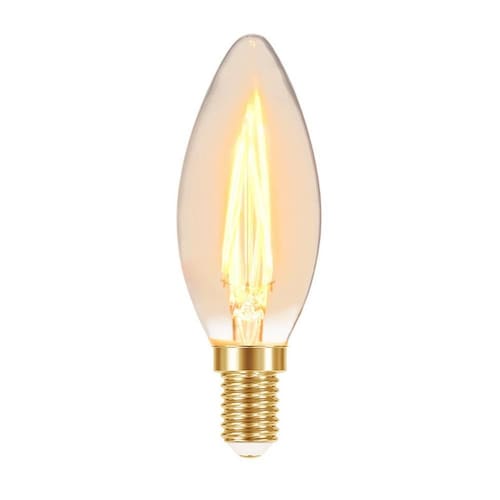 Lâmpada Led Filamento Vela B35 Âmbar E14 Taschibra 110V Características Gerais do Produto: Dimensões AxLxP CM : 11,9 x 3,5 Formato: Vela Cor da luz: 2200K Quente Produzido em: Vidro Voltagem: 110V Alimentação: Energia elétrica Cor acabamento: Âmbar Potência: 3W Fluxo luminoso: Decorativo IRC: 80 Ângulo de abertura: 320 Para uso em soquete: E14 : 1 ano junto ao fabricante Vida útil: 15.000 horas Grau de proteção: IP20 Número de lâmpadas: 1 Acompanha o produto: 01 Lâmpada LED : 1 ano junto ao fabricante Marca: Não Informado