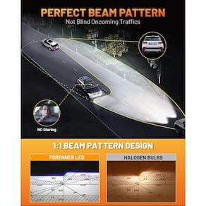 -?Design de feixe ideal?- As lâmpadas de neblina Forenner H4 restauram o padrão autêntico de luz da lâmpada halógena, ângulo de luz projetado cientificamente. Não há pontos escuros ou sombras no feixe nem ofuscamento no tráfego em sentido contrário, melhorando significativamente a segurança ao dirigir à noite.