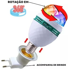 Lâmpada led globo colorida rotativa giratória festa boate + soquete premium, gollate ilu.20645 Lâmpada globo led colorida deixe o ambiente da sua festa muito mais dançante com essa lâmpada de led coloridas divertida. De fácil instalação, basta rosquear em um soquete de lâmpada comum e com isso você pode usar a mesma em qualquer ambiente que desejar, salas, garagens, quartos, buffets, casas noturnas etc. E assim ela irá transformar totalmente sua festa. Ela imita a bola maluca dos anos 60, e irá deixar o seu evento muito mais descontraído. Seus amigos irão adorar a inovação e surpresa. Como todos sabem o uso da lâmpada globo led está em alta nas casas de festas e baladas. Hoje ele é o item que melhor caracteriza uma boate, ele é sinônimo de baladas, músicas, diversão, entretenimento etc. Também é para você que tem um comércio e quer chamar a atenção dos seus clientes. Especificações técnicas tensão: 110v/220v bivolt automático lâmpada rotativa rgb 3w e27 led lâmpada com sistema rotativo em globo de cristal efeito: estroboscópico cor das luzes: vermelha, verde, azul potência w : 3w fonte de luz: led de alta performance soquete: e27 econômica não gera superaquecimento instalação rápida e fácil vida útil: mais de 10.000 horas benefícios do produto: leds de alta luminosidade, com alta economia de energia e fácil utilização; pode ser colocada no teto; domo circular giratório com efeito prismático nas cores vermelho, verde e azul; feixes de luz fortes e condensados; iluminação colorida, com cores fiéis; não emite raios uv; baixa temperatura durante operação; rotação automática, tendo efeito de iluminação de palco; aparência lembra bola de cristal. Recomendações: não molhar, o produto não possui proteção contra água itens inclusos 1 - lâmpada de led colorido giratório 1 - soquete bocal para ligar a tomada Marca: Shopbr