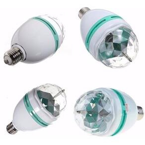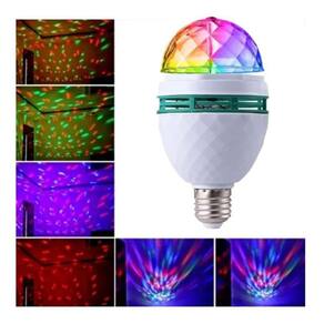 Com esta lâmpada rotativa de LEDs coloridos, sua festa vai ficar ainda mais animada As crianças simplesmente amam o efeito que ela faz A instalação é muito simples: Basta rosquear em um bocal de lâmpada comum. Ela imita a bola maluca dos anos 60 e irá deixar seu evento muito mais descontraído Todos irão adorar