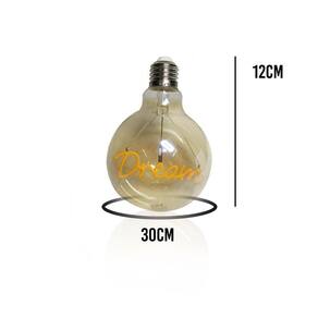 Lampada Led Mensagem Dream Vintage 4w Branco Quente Casa Comercio Deixe a decoração da sua casa ainda melhor com a Linha de Lampadas Vintage Led, luz branco quente e de leds, com uma mensagem luminosa. Esté um produto de fácil instalação, soquete e-27, 4 watts de potência. Características: Mensagem: Dream Cor: Branco quente Tensão Elétrica: 127v Potência: 4w Fluxo Luminoso: 100lm Eficiência Luminosa: 25lm/WW Indice de repodução de cor:>70 Proteção: IP40 Temperatura da cor: 2.400k Dimensões aproximadas: Altura: 15cm Largura: 10cm Circunferência: 31cm Conteúdo da embalagem: 1x Lampada Led Vintage Dream 3 meses de garantia contra defeito de fabricação 115gr** DREAM Informações Técnicas