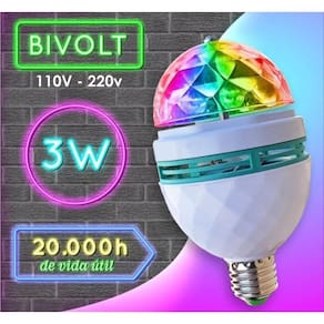 Lâmpada led rgb globo colorida giratória festa balada A verdadeira lâmpada globo led coloridadeixe o ambiente da sua festa muito mais dançante com essa lâmpada de led coloridos divertida.De fácil instalação, basta rosquear em um soquete de lâmpada comum que ela irá transformar totalmente sua festa. Ela imita a bola maluca dos anos 60, e irá deixar o seu evento muito mais descontraído. Seus amigos irão adorar a inovação e surpresacomo todos sabem o uso da lâmpada globo led está em alta nas casas de festas e baladas. Hoje ele é o item que melhor caracteriza uma boate, ele é sinônimo de baladas, músicas, diversão, entretenimento, etc.Especificações técnicas Tensão: 110v/220v bivolt automático Lâmpada rotativa rgb 3w e27 led Lâmpada com sistema rotativo em globo de cristal Efeito: estroboscópico Cor das luzes: vermelha, verde, azul Potência w : 3w Fonte de luz: led de alta performance Soquete: e27 Econômica Não gera superaquecimento Instalação rápida e fácil Vida útil: mais de 10.000 horasitens inclusos1 - lâmpada de led colorido giratório1 - soquete bocal para ligar a tomada do vendedor: 1 meses Marca: Não Informado Ean: 7894652445776