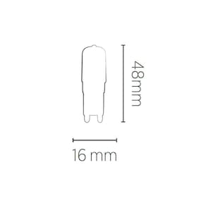 Lâmpada Led Save Energy Halopin Ii 2w G9 220v - 6500k Se-265.2873 Especificações Gerais do Produto:Dimensões AxLxP (mm): 48x16Garantia: 2 anos junto ao fabricanteFator de Potência: Maior que 0,7Fluxo Luminoso: 180 lúmensIRC (Índice de Reprodução de Cor): Maior que ou Igual 80Potência: 2WSoquete: G9Vida Útil: 15.000 horasModelo/Tecnologia: LEDTipo: BipinoDimerizável: NãoEficiência Luminosa: 90 lm/WGrau de Proteção: IP 40Ângulo de Abertura: 320? O que vem na caixa:1 Lâmpada