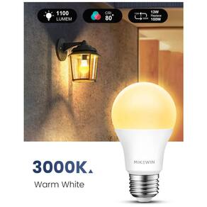 Proteção ocular e segurança à noite CRI80 índice de renderização de cores, 12W equivalente a 100W 3000K criando uma atmosfera quente e confortável para seus espaços, mantém sua casa mais segura à noite. Dicas 1. Não é adequado para uso com dimmers 2. Mantenha o interruptor ligado 3.