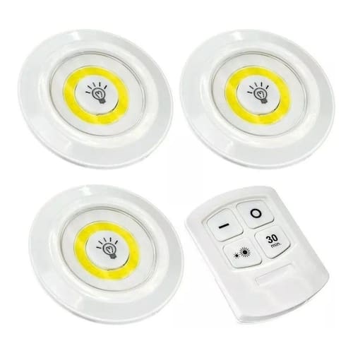 Os spots podem ser acionados por Controle Remoto ou por toque no botão frontal. - Pode ser aceso individualmente ou em Conjunto - Pode ser utilizado no mesmo cômodo, ou em Ambientes diferentes. - Função Timer que desliga sozinha em 30 minutos - Com regulador de intensidade da LUZ - Opção: Luz Forte ou Luz Média - Fixação por parafuso (parafusos não acompanham)